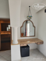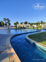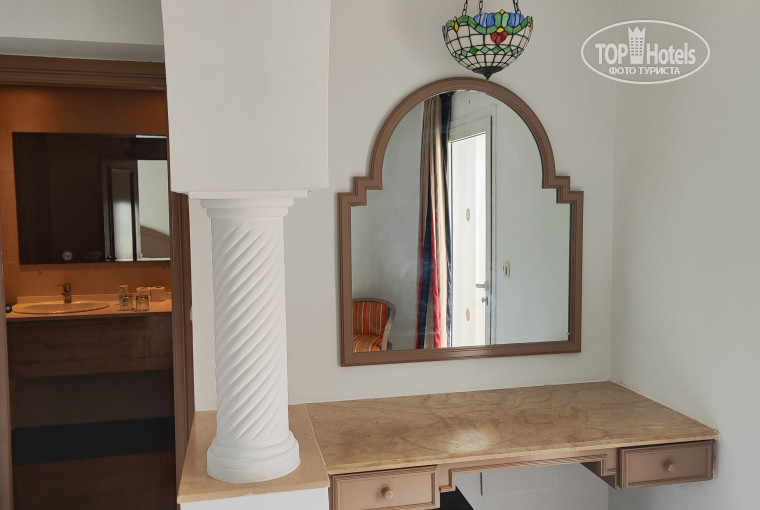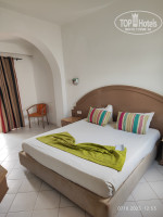 Летели из Санкт-Петербурга, довольно быстро, 4 часа, Тунисской авиакомпанией, с небольшой задержкой. Прилетели в Тунис рано утром, отель очень близко, буквально пол часа и мы были на месте. По местному времени наверное было часов 4-5 утра. Заселение с двух. Семью с ребенком заселили сразу за вознаграждение, дали номер на втором этаже трехэтажного корпуса, потом дали номер на первом этаже другой паре, больше свободных номеров не было, сказали ждать, подойти часов в 11. У семьи с ребенком в номере были свободные диваны, мы скоротали время там, после бессонной ночи очень устали. Сначала нас хотели сразу рано утром поселить в один номер с двумя проходными комнатами, мы посмотрели номер и отказались, решили подождать, пока не освободятся два одноместных. Часов около 12 нам дали одноместные номера в бунгало. На ресепшен немного говорят по-русски, при раннем заселении помогло, что сын хорошо владеет английским, потому что портье не говорил по-русски. Иногда пользовались пр решении проблем переводчиком в телефоне. Браслетов в отеле нет, поэтому при позднем вылете без проблем пользуетесь всем в отеле.