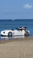 Пляж грязноват-приходилось постоянно напоминать сотрудникам об этом. Вход в море хороший. Глубина не сразу. Лежаков много.Навесы староваты только.
