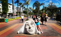 Питание, бары и анимация тоже в восторге не оставили, и то и другое так себе. Про бассейн особо сказать нечего, купались в нём мало. В основном проводили время на пляже Клеопатры, ради которого и прилетели в Аланью. Обещанных туроператором восторгов пляж не вызвал. Заход в море по бетонным плитам, неудобно. Единственное, что очень сильно порадовало - это набережная. Находится она прямо через дорогу, длинная, с множеством интересных скульптур, мостиков и фотолокаций. По пути можно полюбоваться на буйство растений и цветов, взять в аренду велосипед и проехаться до парка развлечений (в противоположном от пещеры конце набережной). Пещеру кстати тоже стоит посетить, как и рынок рядом (купили там довольно качественные местные расписные тарелки).
