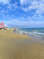 Вход на пляже неудачный, есть камни, но зато если отойти влево на 100 метров или вправо тоже на 100 метров, то можно плавать без опаски и никто никого не гоняет, поскольку пляжная зона в посёлке Чолаклы общая, гуляй сколько хочешь и куда хочешь вдоль берега. Сам пляж настоящий песчаный а не привозной, как это в других отелях бывает. Температура воды была практически одинаковая втечение всех 12 дней моего отпуска с 16 по 27 октября: утром 24, вечером 26. Из них два дня было пасмурных с дождём и ещё два было пасмурно утром, но я купался даже и в это время. Воздух в конце октября на пляже прогревается в только к 9 - 9:30, но зато и в полдень можно загорать без опаски, что я и делал.