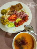 Супчики я тоже одобрил и добавлял в них сухарики и специальные сушёные специи. . Пекут также мини-пиццу на обед и ужин. Кроме рыбы бывает шаурма, шашлычки были пару раз, гуляш из говядины, фрикадельки, ну и макароны и картофель, которые я обычно в Турции не беру. Зачем брать то, что и дома в избытке. А вот БАКЛАЖАНЫ, шпинат и перцы я уважаю в разном виде. Нужно лишь положить ложечку риса на тарелку, чтобы не было проблем пищварительным трактом:)