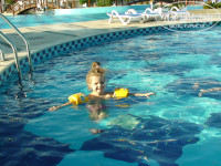Бассейны и взрослый и детсий подогреваемые. Если нужны горки, можно сходить в соседний Sunrise , покататься.