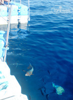 3. Акулы...Честно говоря,удивлялись наглости русских туристов по отношению к бедным местным акулам и бесконечной терпеливости акул! Терпят выкидоны наших весьма нетрезвых туристов просто-таки с христианским смирением, я бы уже давно за такое руки пооткусывала. Если объективно - встретится с акулой еще ухитрится надо!Да,Домина - в бухте Шаркс Бай (Акулья бухта), поэтому понтон Домина Гарем -один из самых оборудованных в смысле безопасности в Шарме.Там всегда дежурил спасатель с аптечкой,который в случае появления любых опасных рыб давал свиток и просил выйти из воды. Настойчиво и многократно просил!Так вот,итальянцы по свистку просто пулей вылетали из воды, и все оставались целы.А наши отморозки с не меньшим энтузиазмом наоборот начинали бросаться в воду,подплывать к акулам,хватать за бока и тыкать им в морду фотоаппаратами со вспышками. Особенно впечатлила славянская мамаша,сталкивающая 8-летнего сына с понтона навстречу стае акул со словами: "Сынок,плыви к папе,сфотографируй рыбку!". И причем тут отель? От такой дурости ни один спасатель не убережет!