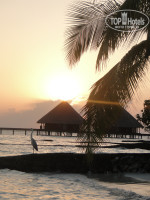 2. Отель был полностью заполнен - по приезду заселили в водные бунгало - якобы за неимением стандартных номеров. Расчет на то, что захочется там остаться и дальше (150 долл сутки). Там действительно здорово - в полу стеклянное "окно" метр на метр, ночью включается подсветка и можно смотреть как внизу беснуются рыбешки)) Вообще бунгало расположены чудесно - друг напротив друга с окнами во всю стену, короче мечта вуайериста)))) Пару раз было весело наблюдать за соседями (ничего пошлого!!) Новые бунгало более современные и уединенные.