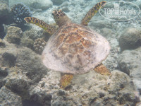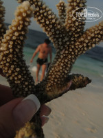 1. Отель расположен очень удобно - ехать из Мале на катере - 30 минут. Вокруг красивый и богатый риф. Со стороны технического пирса много рыб, черепахи и другая живность. Но дно покрыто мертвыми кораллами, плавают скаты и мелкие акулята, поэтому надо быть осторожными. Со стороны "парадного" пирса белый песок и очень чистое дно - можно купаться с детьми и ходить свободно. Вообще риф расположен близко - 30 - 100 метров.