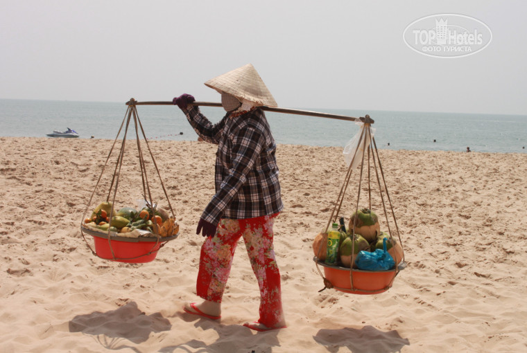 Пляж великолепный, теплое море, белый песочек, когда сильно дует ветер все море заполоняют так называемые скайт-серферы, при желании там можно научиться этому виду спорта. Деньги лучше менять напротив отеля, там самый низкий курс. Массаж можно делать хоть каждый день, стоит 300р. Можно торговаться. Цены в кафешках очень недорогие, можно наесться на 300р с пивом или соком свежевыжатым, а если проехать километров 8 в сторону г. Муйнэ, тк там еще дешевле.