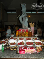 Супы-пюре (из кабачка, шпината, моркови, острый томатный, куриный, чечевичный с сухариками, суп от шеф-повара - все вкусные!), вторые блюда (всегда был выбор мяса - курица, индюшка, говядина, телятина, много овощей, как свежих, так и варёных-тушёных-запечённых, правда, любимой баранины муж так и не дождался и с рыбой не было возможности развернуться - но это мелочи), плюс вечные закуски, нарезки, выпечка аля пицца и прочие фаст-фудные варианты для экстремалов. :-) Вот колбаса у них несъедобная (кроме нежной куриной - дети на завтрак по кусочку уплетали), но мы её и дома то не едим, так что не страдали. О десертах вообще лучше не вспоминать - битва с ними была проиграна в чистую! В наш последний ужин был вечер десертов - ооооооо, это было нечто! :-) Ну и фрукты не подвели. Клубники наелись на год вперёд.
