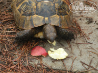 Красивую и ухоженную территорию отмечают все, даже при написании негативных отзывов. И это действительно так. Зелено, красиво, уютно, красочно (много цветов и цветущих кустарников). Много живности, дети были в восторге от шустрых ящериц, медлительных улиток и нагловатых местных черепах, ползающих где им только вздумается (но, конечно же где потише и поспокойнее). Есть вполне приличный зоопарк, открытый с утра и до позднего вечера. Не вызывающий жалости к животным, а просто доставляющий радость и своими просторами и чистотой и возможностью кормить животных из собственных рук (булочки и яблоки шли на ура, как у птиц, так и у барашков, осликов, лошадей и малышей пони). Ну и отдельный разговор о двух наглых умненьких шимпанзе. Они такие номера показывали - наши дети ухахатывались! Устраивали шоу, выпрашивая напитки, слали воздушные апиджуки (поцелуи, значит).
