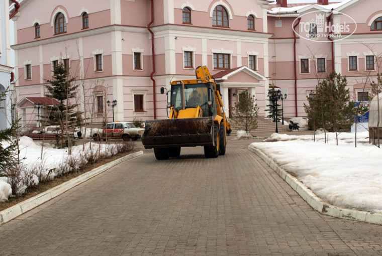 Стоит заметить, что в отеле очень темно: на рецепции, в коридорах, в ресторанах, везде! На рецепции из 6ти люстр горела только одна. Плюс ко всему территория недостроена: мы лицезрели веселый трактор, разъезжающий прямо по прогулочным нечищеным дорожкам. Посреди комплекса обнаружили пустырь с грязью и снегом. Понятное дело – весна, но неприятно.