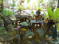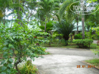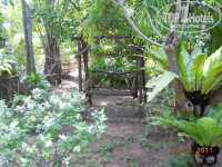 Отель состоит из 1 основного и разбросанных домиков-бунгало, все бунгало выходят окнами на красивый сад. Сад действительно хороший с цветами и пальмами. У нашего домика ананас рос.