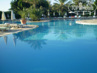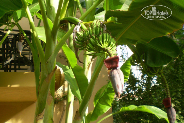 Территория довольно большая, зеленая и ухоженная, растут и лимоны, и апельсины, гранаты, бананы, персики и прочая прелесть, куча цветов. Детвора регулярно "трясла" персиковое дерево, растущее перед нашим балконом)) Два взрослых бассейна (1.40 и 1.20 с водными горками), и два детских бассейна (0.35) В центральном корпусе есть крытый бассейн(1.40 глубина), но довольно прохладный, сауна, хамам, тренажерный зал - почти всегда пустой.