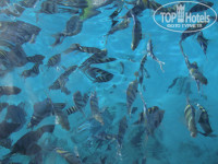 Ехали купаться в море. а купались в основном в бассейне.Уж очень все запуганы акулами.Стоит черный флаг, предупреждающий об опасности,понтон огорожен буйками на расстоянии по 3 метра от него,т.е. своего рода лягушатник,купать даже не хочется.Люди прибегают в 6-7 часов утра,чтоб занять лежаки и уходят на полдня,народу на пляже мало, а лежаки все заняты,не очень хорошо получается.Рыбок очень много и все такие красивые, каждый день видели новых.Жаль, что кормить нельзя.Гриша впечатляет.