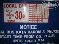 - до пляжа 10 минут в любую сторону - либо налево, либо направо от отеля - неспешным шагом. На автобусике можно доехать до пляжа Karon за 30 р. на человека (проходит мимо нашего отеля где-то раз в полчаса (расписание вывешу), отходит он от отеля ката бич)