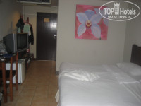 - номер средненький: тусклое освещение, только 2 розетки для телевизора и холодильника, поэтому чтобы зарядить телефон или посушить волосы приходилось что-то выключать, в ванной комнате нет ни одной; из умывальника течет вода одной температуры (не холодная- не горячая), душ - стоит нагреватель, струйка неочень-то сильная, длинные волосы промывать приходится долго + сам душ мне дотягивался с трудом до копчика (во мне 165 см.), что было очень неудобно.