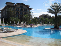 Ездили с ребенком 3.5 года. Дорога из аэропорта пролетела не заметно, плюс ко всему мы были первыми, кого высаживали. В отель прибыли в 21:30, разместили моментально! Поселили в главном корпусе на 2-м этаже с видом на бунгало. Номер чистый, ремонт нормальный, все работает. Кстати, тут были мнения, что в бунгало и возле дороги размещают только русских... Ничего подобного!!! Много немцев проживало в домиках на первом этаже и с окнами на дорогу! Это действительно мощная артерия между Антальей и Аланией, движение по которой происходит круглые сутки и слышимость хорошая, но не напряжно и привыкаешь буквально на 3-й день. И ещё, я не из тех, кто спит очень крепко, но за 10 дней я НИ РАЗУ не слышал Муллу рано утром! Только по вечерам, около 17:00, но без этого Турция не была бы Турцией. Призыв верующих Муллой совершенно не напрягает, а придает колорита.