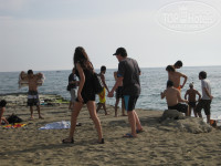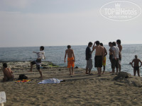 - На пляже во второй половине дня (ориентировочно с 16-30 до 18ч) появляются местные жители. Это те, кто живут где-то рядом. В основном подростки, маленькие дети с родителями, парни лет по 20-25. Они свободно туда приходят и купаются вместе с отдыхающими. Шезлонги не берут, но ведут себя довольно громко, но ни к кому не пристают (!).