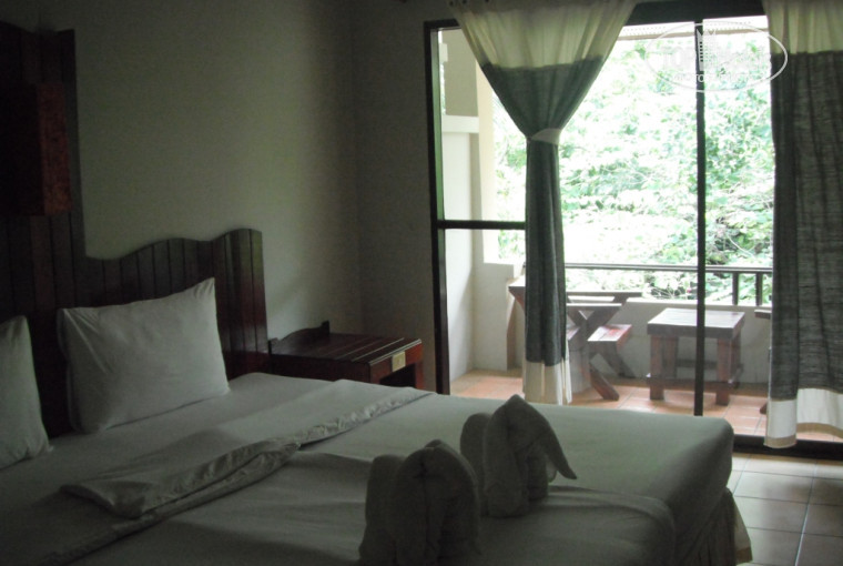 Номера: в отеле имеются бунгало - одноэтажные домики и 2-этажные корпуса. Разница в цене между бунгало и номером супериор не значительная. Нас поселили в 2этажное здание, на втором этаже (номер 204). Номер отличный, мебель уонечно не новая, но все чистенько и аккуратненько. В комнате была кровать (2 составленные вместе полуторки), туалетный столик с зеркалом, деревянное кресло-стул, комод, прикроватная тумба, гардеробная - в этно-стиле -бревно с плечиками и полкой, из техники имелся холодильник и телевизор (2 российских канала, первый и планета ртр), кондиционер (работал отлично),пара светильников (освещения если честно маловато). На балконе - 2 кресла и стол. Ванная : раковина, душ, зеркало и туалет. Вода в раковине - тонкой струкой,из душа более-менее нормально, но у душа был очень короткий шланг((. Из посуды - дают 2 стакана питьевых, и 2 стакана в ванной для щеток и прочего.