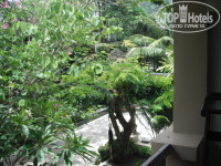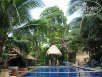 Территория: вся утопает в зелени, очень красиво, все цветет, на деревьях фрукты, птички поют – колибри, голуби, птицы, похожие на воробьев, и всякие разные нам не знакомые. Очень часто видели белок. На территории расположены 2 бассейна (вода очень горячая) с лежаками и зонтиками (рядом имеется туалет и душ), бар на бассейне (но при нас он уже не работал – не сезон) там же есть маленькая библиотека. Имеется пара прудиков –небольшой с кувшинками, и еще один в глубине отеля с лотосами, беседками, качелями. В конце отеля мини зоопарк – попугайчики, орел, кролики (когда мы отъезжали - там смонтировали еще несколько клеток, видимо еще кого-то заведут). Большой зеленый попугай говорит хеллоу)), рядом рыженький попугайчик – смешнявый- дает чесать спину, голову под крыльями и истошно орет при словах Ки-ки))). Так же есть пара собак (но одна сидит в клетке, а вторая разгуливает в наморднике, предпочитает прятаться по кустам в тени) и каждый день приходил котенок (очень ласковый, всегда плачет, мы его кормили и несколько раз брали в номер ночевать – спит тихонечко в углу, к слову - шерсть смотрели- чистый без блох),купили ему ошейник с колокольчиком ( у них домашние животные ходят с колокольчиками, у этого котенка тоже изначально был, но кто-то из туристов его снял). Очень прошу – покормите зверюшку, если будете отдыхать в этом отеле).