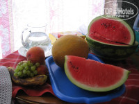 На фрукты в столовой и не надейтесь: это вам не All inclusive. Их нужно покупать тут же рядом, иначе вы их так и не попробуете. Мы покупали и арбузы, и дыни, и персики, и черешню… не на много дешевле, чем в Москве, зато свежие. Качество фруктов совсем иное, т.к. всё местное. Чего нельзя сказать о вине, которое предлагается здесь же на территории возле корпуса. Настоящая отрава. Лучше не рисковать, а пойти и купить бутылку знатного вина местного разлива в магазине.