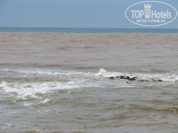 Главный и очень весомый минус этого отеля - река Карги, огибающая территорию отеля и впадающая в море рядом с пляжем. Первые дни было еще нормально, но однажды на весь день зарядил дождь, вода в реке вспучилась и приобрела цвет глины, все это вливалось в море и течением относилось прямиком к отельному пляжу. На следующий день море перед отелем выглядело так - вокруг голубое с зеленью, перед пляжем насыщенного коричневого цвета. Больше в море никто не купался, бассейн с морской водой тоже стал мутным. Так было до нашего отъезда через 5 дней после дождя!