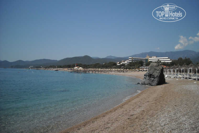 Пляж также оставляет желать лучшего. Хотя и пишут, что есть бар на пляже, но это нельзя назвать баром. Но все же кофе и прохладительные напитки были в наличии, но не больше этого. К 10 утра мест на пляже не хватало, т.к. территория, в отношении с числом отдыхающих, очень маленькая. Море очень чистое и лазурное. Впечатляет!!! После 12 мая купаться можно смело, вода теплая. И с погодой повезло. На солнце - больше 26 градусов. Пасмурно было только два дня.