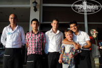 Прочитала все предыдущие отзывы. Сердце защемило- вспомнила многих. Нас тоже , я думаю, запомнили - семья с маленьким Захаром, которого комарики искусали))) И Ларису с дочкой и сестрой вспомнила. Да, про пляж и зонтики, абсолютно соласна- но мы предпочитали, если нас помните лежать под большими зонтами- поэтому после завтрака бежали их занимать)))))Привет всем!!!!!!!!!!Мы были в первый раз и для первого раза нам очень все понравилось. Еды нам всем было достаточно. Единственное, что купили в Биме для малыша - это кашу растворимую и разводили ее теплым молоком, которое давали на завтрак. Кстати на завтрак я влюбилась в йогурт- объеденье с разными наполнителями. Враки, что курицу давали два раза- стабильно получали ее, хоть и от шефа, но всегда имелась - и на обед, и на ужин, а если не хватало - я подходила и брала еще. Овощи в изобилии для этого времени года- огурцы, помидоры, салат, баклажаны , кабачки жареные - объеденье. Вино мне понравилось белое. После отравления в Бодруме муж не пил раки. Мне очень понравилось, что в любое время спускаешься на терассу- кофе, чай, вода. В 16.00 высталяют печенье. На пляже трескали лепешки.И вообще , если ко всему придираться, то отдых, конечно же будет наиужаснейшим. Мы ехали по СПО и нам на двух взрослых+ребенок9лет+инфант=50тысяч российских рублей. Я думаю, врятли кто поспорит, что за такие деньги мы просто шикарно отдохнули 11 дней. Территории нет, но мы гуляли в Махмутлларе, который недалеко. Все супермаркеты обошла - БИМ, А101, Дженпа. На рынке отоваривались- правда, цены еще не очень были - все-таки май. Бобо очаровал , я вижу всех - моцй сын не исключение. Мне так жалко его было- рыдал в родной Магнитке почти неделю- тосковал по отелю. Дорогу мой 1,5годовалый ребенок перенес на отлично- автобусы, что и говорить- отпад. Рекомендую тем, кто едет в первый раз и не за большие деньги. Лучшие отели по таким же ценам нужно было бронировать в феврале-марте, а мы дождались мая- поэтому и этот отель оставался почти единственным в своей ценовой категории из нашего города.