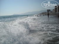 А сами мы отдыхали на пляже. Шезлонгов хватало на всех. И те, кто говорят, что это общественный пляж неправы. Вход к данному отрезку пляжа осуществлен через тоннель от отеля. Также есть работники, которые контролируют чтобы на шезлонгах отдыхали только постояльцы отеля. Пляж песочный, вход в воду - галька\плиты. Но это не ровные бетонные плиты, а природная каменная порода, поросшая мхом, неровная и скользкая. Лично меня это сильно разочаровало, так как нельзя было комфортно входить и выходить из воды и пришлось мириться с боязнью, что вот вот и моя нога угодит на какой-нибудь булыжник. Моего парня, как и большенство отдыхающих, этот вопрос не напрягал. При сильных волнах войти по пояс в море вообще нереально. Мы попали именно на такие волны, но купаться недалеко от берега все равно было очень весело. Вообще все аланийское побережье каменистое и в других отелях вход в воду такой же. Весь пляжный инвентарь в отличном состоянии.