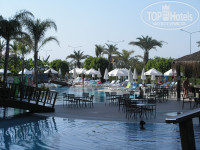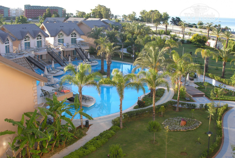 Территория не очень большая, но довольно красивая. Дорога и канал не напрягали, хотя номер был торцевой и выходил и на дорогу с морем и на канал с горами. Вечером у нас было не очень шумно, хотя какую-то дальнюю дискотеку было слышно часов до 11.