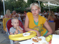 Мы были в авентуре в июне 2010г. 4 девушки и 2 детей по 1,5 года.....В Турции первый раз .Мне все очень понравилось кроме пляжа.(очень узенький и галечный)... Сам отел состоит из 1 корпуса окруженного прекрасной и большой территорией. Есть отличная детская площадка и мини клуб, очень красивый пруд с беседками и мостиком, амфитеатр где проходят вечерняя анимация для детей (мульт и дискотека), после и взрослая. Аниматоры молодцы: и днем и вечером выкладывались на полную. Каждый вечер продовали сладкую вату, кукурузу ипопкорн по 2 доллара, детям это очень нравилось. Есть своя дискотека: но мы там не разу небыли. Также на территории есть кальянная где вечером можно раслабится. Хамам неплохой, но уж сильно масажисты навязчивые, от туроператора содрали с нас 40 баксов за кождого, можно дешевле договориться. Экскурсии от тезтура вообще были самыми дорогими. Заселили нас в хорошии номера без доплаты, нам с детьми достался № на 2 этаже с видом на бессейны, море, и ресторан, сестре же на 6 с отличным выдом на море. Все хорошо работоло, было чисто и уютно, убирались тоже хорошо. Еда нам очень понравилась, детей всегда было чем накормить, самим всегда хвотало мяса и фруктов и сладостей, все было очень вкусно.... Один раз в неделю проходит презентация огромного торта - мороженного, очень вкусного. В общем отпуск очень понравился.