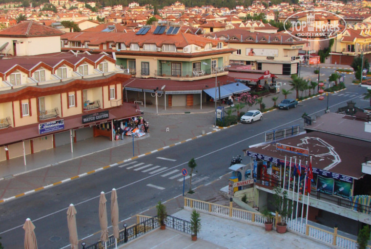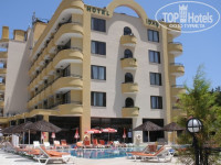 Хороший отель.Номера удобные.Вид с балкона везде хороший,т.к. кругом горы.Бассейн приемлемый.Еда вкусная,на убой.Всегда были арбузы.дыни,черешня,яблоки.апельсины.Напитки, включая вино, из бутылок.Бар до 23-00 у бассейна.На море советую не толкаться на пляже,а идти влево до конца всех пляжей в сторону Мармариса(10-15 мин.)и там на песке спокойно балдеть бесплатно.Там ещё мосток есть для ныряния.В общем -советую этот отель.