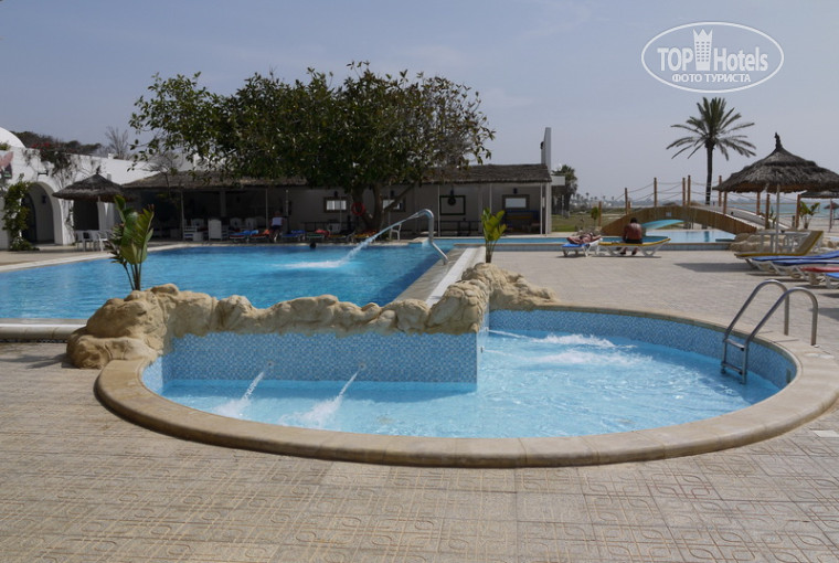 Лежаки и матрацы у бассейна бесплатные, а на пляже стоят по 2 динара. Пляж песчаный, но у самой воды полоса гальки, шириной метра 2. Лучше иметь специальную обувь, иначе заходить, а особенно выходить из воды очень неудобно. Пляж не очень чистый, но в последний день видели как его чистили несколько тунисцев.