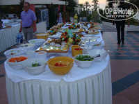 Питание в отеле неплохое, мясо есть и мяса много, особенно в обед и ужин. Из фруктов постоянно: арбузы, дыни, яблоки, груши, апельсины. Иногда: сливы, бананы, грейпфрукты, персики, абрикосы, черешня. Кондитерка также не подкачала: торты, печенья, пирожные и всяко разное. По четвергам в отеле- грильфуршет, с мясной готовкой.