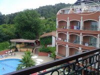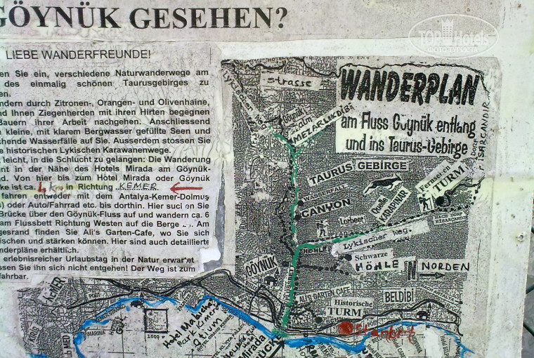 Всем привет! Пообещала себе, как только вернусь напишу объективный отзыв об отеле, да вот наконец то выбрала время. Начну с самого начала. Встречала нас в Турции фирма Интурист, очень четко все и быстро, пока ехали гид (девочка из деревни, но вежливая и на все вопросы отвечала) нам рассказывала всяки разны истории про мосты любви, желаний и прочее. Ну да неважно, мы начитавшись перед отъездом отзывов сидели скрестив пальцы и с кислыми моськами предвкушали весь кошмар, который предстоит увидеть, тем более что до этого отдыхали в отеле 5* в Алании (отличная пятерка была). Но так как цель в этот раз была просто потусить на море, мы с таким настроем и ехали. Когда нас привезли в отель мне сразу понравилось, что играет музыка, народ тусит у бассейна, лежаки свободные есть. Расселили в течение 20 минут, хотя в отеле мы были в 11 утра, и по правилам могли расселить только после 14:00. Так вот, мы уже приготовили 20 долларов, чтоб номер дали, но они нам не пригодились. Поселили на 4 этаже в очень даже приличном номере с видом на бассейн ( без доплаты). В номере чисто, полотенце правда одно было на 2-х, но после просьбы, нам аж 5 на след. день на 2-х дали :))) В номере убирали регулярно, за доллар цветами украшали постель. Пошли на обед в первый день, я приготовилась травку кушать, как в отзывах написано было, но было много вкусной еды и пришлось непривычно объесться, так как хотелось всего попробовать. Очереди кстати не было, все культурно. На ужин за 8 дней мы ели и шаурму и картошечку по-деревенски и разные овощные рагу и курицу жареную и разные колбаски и пюре, в общем еды всегда хватало и часто не было место в желудке для арбуза и дыни, которые были каждый день. В общем мы довольны были рестораном. Баром тоже довольны, бармен неохотно работает только вечером, русские-то от души по 10 стаканов сразу хотят взять, чтоб до 22:00 успеть напиться :) Бар просто закрывается в 22:00. На море мы ходили сразу после завтрака и были до обеда, идти минут 10, очень приятно после завтрака такая прогулка была, заодно и воздухом дышали и в апельсиновых рощах фоткались. На море вход плохой, лучше сразу купить тапочки, тогда нормально будет, мы не купили, но нашли приличный вход и сразу плавали, чтоб ноги не ушибить об камни. Море очень чистое, прям все дно даже на глубине видно, супер вообще. А самым крутым в нашем отпуске было то, что мы взяли велосипеды в прокат (брать нужно если идти направо вдоль рынка пока не увидите порядка 20 выставленных велосипедов, там одно такое нормальное место, мы на 6 часов 4 велосипеда взяли за 20 долларов). В других местах цены дороже. И на этих велосипедах поехали на каньон. О нем в отеле никто не афиширует и даже гиды, они просто туда не возят туристов а объяснять дорогу вам тоже не будут, зачем им это надо. Так вот от этого отеля до каньона 7 км где-то, ехать лучше вдоль моря, дорога все время вправо, у местных спросите они скажут в какую сторону. Красотища вообще там, можно сходить в пещеру, только в гидрокостюме, 10 долларов берут с человека, да и вход в парк около 3,5 долларов с человека, но это стоит того. Голубое озеро увидите и много разных красот. В общем сутала писать, если есть вопросы, пишите в личку, рада буду ответить. Нам очень понравилось! Фото как проехать на каньон выкладываю и фото с красот по пути к каньоне тоже.
