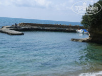 Пляж действительно узкий, но еще можно загорать на пирсе, для этого созданы все условия.