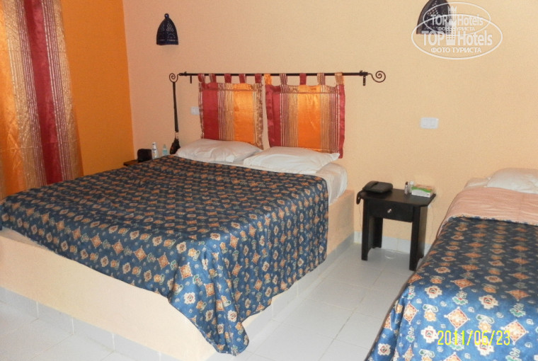 В отель приехали около шести часов вечера, пока заполняли карточки, нам принесли коктейли (что было неожиданно и очень приятно!!!), сразу выдали ключи и проводили в номер, тут была вторая приятная неожиданность, номер оказался абсолютно новым, большим, новая мебель, сантехника, все работает. Сейф на ресепшен 2 динара(42руб/день), мини бара в номере нет, но в принципе он был и не очень нужен.