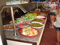 Питание отличнейшее с 7 утра и до 12 ночи! Объясню-с 7до 9 завтрак с 9-10-поздний завтрак потом пекут лаваши с начинкой на улице (бесплатно), обед потом делали бургеры которые плавно переходили в раздачу мороженного и начинался ужин! Бесплатные бары с 10 утра на территории отеля и на пляже-кофе чай (ну были и юпи всякие но мы пили только чай кофе пиво и вино) Кормили отлично но детский стол острый-просто все что можно давать деткам находилось на взрослом столе например-рис макароны отварное мясо тушеные овощи картошка........ Фрукты давали постоянно очень вкусные лаваши и сладкий стол