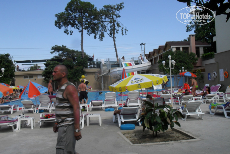 отельчик конечно троечка но в сторону четверочки территория маленькая но удобная Ездил в двоем с супругой по spo от санрайз за эти деньги (780$+ топливный сбор)7ночей в пик сезона,меня все устроило но если вы можете отдать за свой долгожданный отдых больше то не скупитесь и выберите себе хорошую 5-ку желательно ультра , Главная проблема отеля -- ПЕРЕНАСЕЛЕННОСТЬ кто-то тут писал про гриль типа пальчики оближешь , тут нужно добавить,-- если достоишся , мы не стояли тк гриль один и задумано так что б увидев жуткую очередь хотя бы половина отказалась от куриной грудки то же самое на завтрак забудте от жареной яичницы не достоитесь(бл первый раз такое вижу ) но еда это не главное голдными не останитесь, лучше на ужин приходить не раньше 20,00 , Удобное расположение среди магазинов и кафешек , в отеле не скучная атмосфера анимация работает,до моря 100метров природа напоминает наше лазаревское , вход в море как том крупная галька , тапочки для нежных ножек и проблемы нет , дальше дикий пляж красивенные скалы с соснами можно понырять с пирса Половина номерного фонда реновирована ,номера маленькие но чисто ,все работает,не дай вам бог попасть в старые номера--- совдеп,детская анимация на уровне , в баре вечером диско - норм была живая все веселились кому мало через дорогу диско JEST( не ходил) Вобщем если денег мало а на море хочеться то можно,эти мелочи пережить,если деньги позволяют то лучше не скупиться ( В лазаревском или в крыму за то же самое отдашь в 2 раза больше)