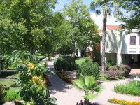 Большая территория (есть где погулять вечером, так как за территорией одни отели)