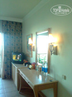 В отличие от Санрайза, - понравилось, что стандартные номера достаточно просторные, с большой лоджией, или террасой (на первых этажах)… Однако, в ближней к морю части отеля – только стандарты, сьюты все находятся в дальней тихой части, вокруг среднего бассейна. Я имею ввиду, что дальняя часть разделена ещё на три… Левая (если смотреть от лобби) – с лужайкой, средняя – с бассейном, вокруг него и располагаются сьюты, и правая, тоже с бассейном, в котором, прямо в воде, есть тренажеры! Видел такой впервые, очень хотелось на них позаниматься, но так и не добрались…..))) Однако, ещё правее находится хоз-двор, и, опять – таки, только двери, но смотрят на не очень живописную картину….