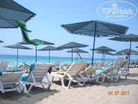 Пляж хороший и места хватает. Если приходить до 10 утра - свободные лежаки всегда есть. Дорога до пляжа занимает минут 10. На пляже есть небольшой бар, где разливают пиво и б/а напитки. А также жарят лепешки с сыром и мясом + салаты и фрукты.