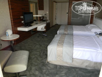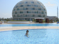 Только вернулись из этого отеля. Остались очень довольны, даже не ожидали что так удачно отдохнем. Мы были троем с ребенком 4 года. Решились ехать в данный отель не видя ни одного отзыва. Но решились ведь по определению новое не может быть плохим . И были приятно удивлены. Отель очень красивый, особенно вечерняя подсветка отеля. Номер отличный . В каждом номере балкон с видом на море. И я вам скажу что вид ночного побережья у меня перед глазами до сих пор. Отель находится на насыпном острове. Питание нет слов всего достаточно и мяса разнообразного баранина говядина курятина даже утка была , рыба местная. Очередей нет заполненность отеля еще не большая. Фрукты разнообразные, а уж о сладостях и говорить не приходиться . Это что то невообразимо вкусное. В ресторане а-ля карт мексиканское меню. В Баре в самой гостинице самые вкусные коктейли(бармен супер делает только он отличный махито). Возле бассейна в баре разнообразный выбор и напитков и питания: лепешки, пица, бургеры, паста и т .д. Наша дочь не выходила из детского бассейна. На территории один большой бассейн, детский, джакузи и крытый бассейн под стеклянной крышей. На -1 этаже спа салон предлогает большой выбор (масажи, пилинги и т.д.) Что касаеться анимации вполне остались довольны. Не навязчиво предлогали принять участие. Детский клуб уже работает. Утром девушка собирала деток и вела в клуб там они 2 часа играли, рисовали лепили потом она же разводила детей родителям и после обеда так же 2 часа, а вечером уже бегала на ужине в ресторане собирала деток на вечернюю дискотеку на которую дочь бежала с привеликим удовольствием. После дискотеки начинался концерт 2 дня были танцы, возле бассейна была виа группа, приезжала Корнелия Манго. Увидеть ее не пришлось поскольку ребенка укладывала спать но рассказывали что была и показывали фото. Рынок неплохой в поселке Авсалар до него не далеко на автобусе который идет по большой дороге ехать минуты 3 стоит 1,5 доллара за чел.но есть магазинчики и у большой дороги до не пешком от отеля минут 7-10 ходьбы. Рядом с отелем отель G как оказалась у этих отелей один хозяин В отели G почи нет территории и все ходили в наш отель и к морю и к развлекательным мероприятиям. О нашем отеле слышали что скоро отель будет называться Хилтон Gold Island. Что касаеться моря то вход песчаный но в самом море местами камни местами месок. Побережье приводят в порядок. Короче ничего не испортило нам отдых, а только остались самые хорошие вречатления. Рекомендую этот отель. Да вот еще территория пока еще не очень озеленена но это не портит впечатлений.