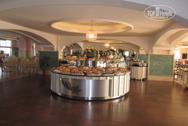 кормили на убой, несколько видов мяса, большое кол-во всевозможных салатов, закусок, много фруктов персики,нектарины,сливы несколько видов,киви,(арбуз и дыня были всегда, а вот черешня 2 раза всего).