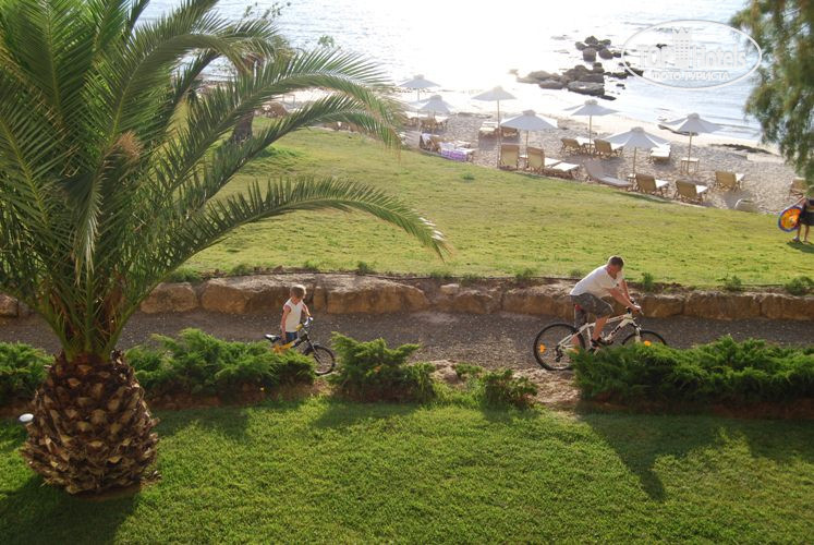 У отеля несколько пляжей, перед корпусом у бара Аммос на пляже вначале мы отдыхали, но с лежаками проблематично было, хотя до обеда мы не спим, часов с 9 утра уже весь пляж был занят полотенцами( искали тень у деревьев, притаскивали сами лежаки, зонтиков уже не хватало. Потом можно было коляску и шезлонг на травку возле бара на пляже передвинуть к деревьям и там отдыхать. Уже в последний день нашего отдыха видела, как людям раздавали памятки, в которых было предупреждение не занимать лежаки. Последние дни мы ходили на пляж за корпусом Б, в котором мы жили и на пляж возле бара Басулас, но и там со свободными лежаками было не сладко, да к тому же пока дойдешь с коляской по грунтовой дороге, вспотеешь))) Есть предложение сделать спуск более комфортным, ну и если идти вдоль пляжа от корпуса Б к пляжу возле бара Басулас одной с коляской, то в одном месте самой без помощи коляску не спустить и не поднять, думаю не сложно сделать там спуск для коляски, потому пишу об этом замечании. Есть еще пожелание улучшить работу бичменов, т.к. их не видно в то время,когда сама таскаешь лежаки или ищешь свободные, хотелось бы помощи, просить не люблю, а они,видя что отдыхающие затрудняются с расположением, могли бы и сами проводить и находить свободные места... Так то пляж достаточно длинный, нам понравилось больше именно пляж у бара Басулас, там море казалось более прозрачным почему-то, лежаки не кучкуются друг с другом, потому свободно достаточно себя ощущаешь и в море тоже не чувствуешь себя килькой, люди на достаточном расстоянии друг от друга). Официанты постоянно ходят по пляжу, можно заказать напитки и закуски в Басулас баре - мы брали сендвич клаб несколько раз, стоимость порядка 9 евро. Муж брал пиво, я фреши, цены порядка 5-6 евро. Жаль, что не было манго, я так люблю фреш из манго, в Египте отменные делают фреши, здесь почему то ни в какую, только в составе микса, а микс не вкусный получается.