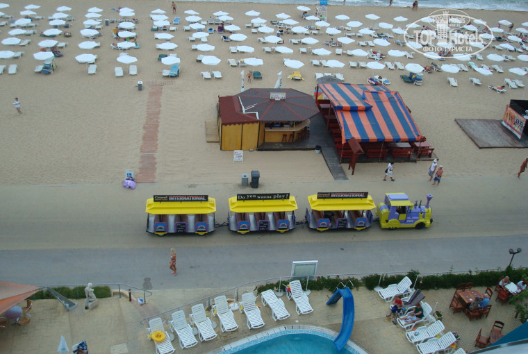 Так как отель находится в самом конце курорта, то унас было тихо и спокойно.Малолюдно.А вот в центре курорта полно кафешек, атракционов, детских развлекалок.Палатки с сувенирами, с одеждой, обувью.Полно минимаркетов, где можно купить воду, газировку, пиво,вина, разные сладости.Для примера скажу, 2-хлитровая бутылка фанты стоит 2.70лева, что на наши деньги=10000.Вообще по поводу цен, всвязи с нашим белорусским кризисом и непонятным курсом доллара, цены в Болгарии нынче для нас высокие.Курс доллара=1,3лева, это почти 1/1. А когда начинаешь переводить в белорусские, то начинает душить жаба, т.к. чтобы уехать в Болгарию, доллары покупали по коммерческому курсу(6000 за $)