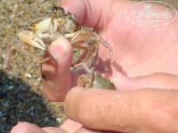 Пляж песок,довольно широкий.Лежаки, зонты, матрацы бесплатно.Вход в море хороший, пологий.Для детей удобный, не глубокий.Море в первую неделю было прохладное, но когда погода установилось, стало очень тёплым.С утра чистое и спокойное, после обеда появлялись волны и пригоняно водоросли. Видели и рыбок, и крабиков, мудуз.Один раз даже приплывали дельфины.