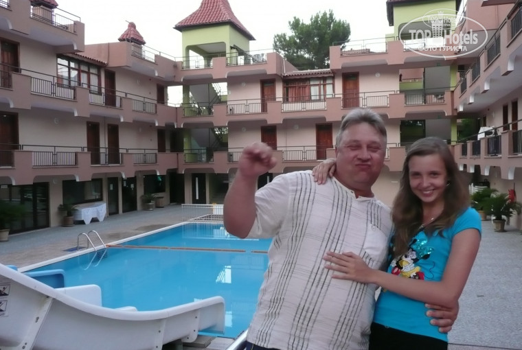 Мы отдыхали с семьёй с 07.07 по 16.07.11г-9 ночей и 10 дней,нам очень понравилось отношение персонала,кухня,спокойный классный отдых,3 раза за неделю желающие могут поехать на дискотеку в Кемер,НАША ДОЧЬ ЕЗДИЛА ОСТАЛАСЬ В ВОСТОРГЕ,спасибо аниматором Ибрагиму,Светлане и Ричи работали в полную силу,правда народ ленивый,ну вообщем это и понятно кто как хочет так и отдыхает!!!От средиземного моря я просто в восторге чистое,прозрачная вода и очень теплое,пляж правда галечный ,но нам это не мешало,рекомендую отдых всем желающим!!!Очень красивая природа с одной стороны горы,а с другой море,территория не большая,но очеь ухоженная и уютная,номера не большие,но чистые,с работающими кондиционерами и телевизором,4 русских канала,мы были в копусе В,но лучший корпус С.Персонал вежливый,улыбчивый,почти все разговаривают на русском.