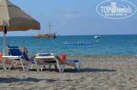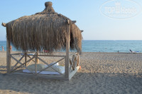 Пляж- отличный,вода-приятная! Почти ежедневно волны. Особенно порадовали шезлонги!!! Полотенца можно менять хоть весь день! На пляже есть речка первое время она не впадала в море,но в один прекрасный день с огромным напором прорвалась и впала в море,было неожиданно! но через 2 дня опять затянулась=) Есть рыбки,но мало! В последний день видела ската!(если конечно это был он,прям у буйков) Есть плот- очень нужная штука)