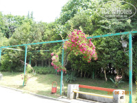 Территория - ОГРОМНАЯ! Гулять по ней можно часами. Кстати, дорожка вдоль моря плавно переходит на территорию пансионата Питиус. Очень красивые парки, аллеи.