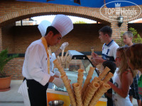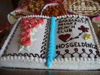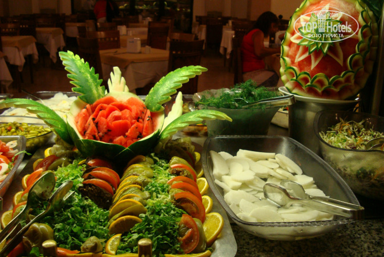 Питание: как правильно писали до меня, питание такое же, как и везде в Турции. На завтрак вы найдете булочки, всевозможные джемы, варенья и мед, омлеты, яйца,сосиски, салаты и т.д. На ужин для вас приготовят шашлык из курицы, люля-кебаб, рыбу на гриле, индейку, всевозможные тушеные и фаршированные овощи. Фруктов всегда много и всегда свежие. Что касается сладостей, то они на любителя, иногда балуют тортами, но чаще, это пирожное и печенье.