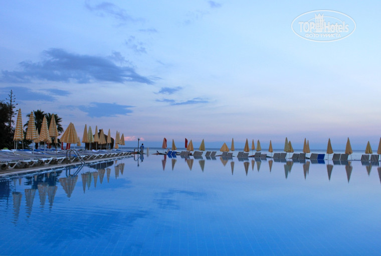 ПИТАНИЕ: есть возможность записаться в а-ля карт рестораны, но нам хватало основного ресторана, в котором практически круглосуточно шведский стол. Много мяса, рыбы. Изобилие фруктов, десертов. Очаровательные и услужливые официанты и бармены. Проблем с поиском столика, приборов, пепельницы и прочего не возникало. Днем можно подкрепиться в снэк-баре рядом с пляжем или полакомиться турецкими лепешками и пончиками. По поводу напитков - восторг! Все напитки подаются в бутылочках и банках, ничего водой не разбавляют, как это бывает обычно. Алкоголь на любой вкус практически круглые сутки. Основной бар работает с 10:00 до 4:00. Водка, виски, коньяк, ром, текила, пиво, раки, мартини, джин, белое и красное вино - в наличии. По вечерам работает коктейль-бар. Практически на каждом шагу стоят большие холодильники с водой. Недалеко от рецепшн располагается очаровательное турецкое кафе, где с утра до ночи подают турецкий чай, кофе и сладости.